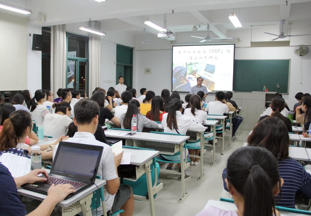 2017年10月12日晚,第四十期华文教育学术沙龙活动在厦门校区C2-203如期举行。本期沙龙的题目是《事件相关电位(ERP)与语言加工研究》,由华侨大学华文教育研究院郝瑜鑫博士主讲,华文教育研究院副院长、华文学院副院长胡建刚主持。华文教育研究院、华文学院的老师以及研究生参加了此次沙龙活动。
