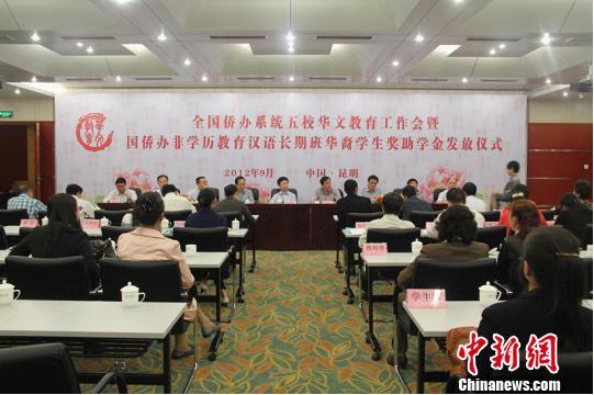 9月12日至16日,全国侨办系统五校华文教育工作会在云南昆明召开。本次会议由国务院侨办文化司主办,昆明华文学校承办。国务院侨办文化司司长雷振刚、文化司华教一处处长邱立国,云南省侨办和五校负责人共40余位嘉宾参会。副校长张禹东率华文学院院长陈旋波、党委书记纪秀生、副院长胡培安及办公室主任邹琍琪参加。