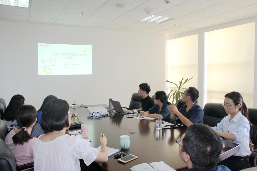 吴辰禧、韩雪、贺慕华分别做了题为《汉语二语双字复合词加工机制实证研究》、《二语学习者能够建构类似母语者的语义范畴表征吗?—项基于原型范畴理论的实证研究》、《二语句子理解过程中颜色和形状信息的语义整合加工—项基于具身认知理论的实证研究》的开题汇报,阐述了各自的研究切入点、研究目的、研究方法和研究进展等内容。在沙龙的探讨过程中,在场的老师和同学就三位同学的实验研究进行了进一步的讨论,各抒己见,老师们也对三位同学的汇报进行了点评并给出了一些建议。三位主讲人的研究开题汇报不仅得到了在座各位老师的认可,其实验研究方法和严谨的研究精神也值得在座的同学进行学习。