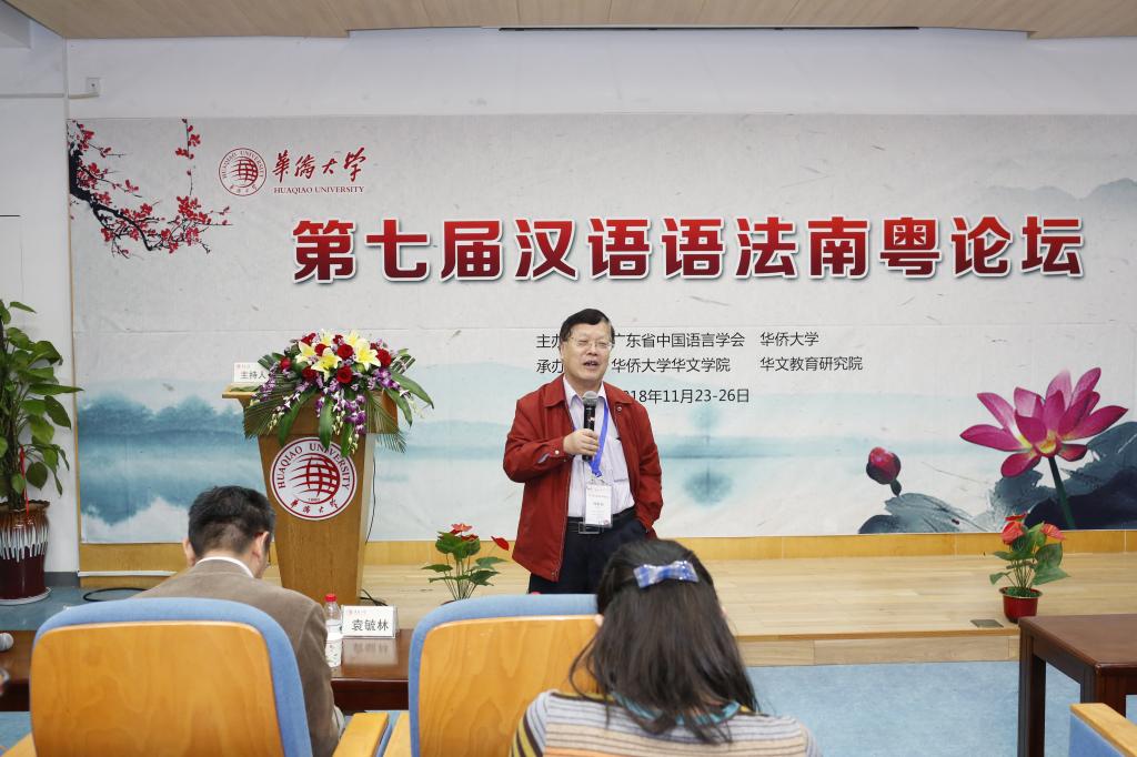 由广东省中国语言学会和华侨大学主办,华侨大学华文学院、华文教育研究院承办的“第七届汉语语法南粤论坛”于2018年11月23 - 26日在华侨大学(厦门校区)举办。来自各地的参会学者40余人,邵敬敏、袁毓林、蔡维天、肖国政、石定栩、郭锐教授作为特邀代表参加了会议,论坛共宣读论文40余篇。