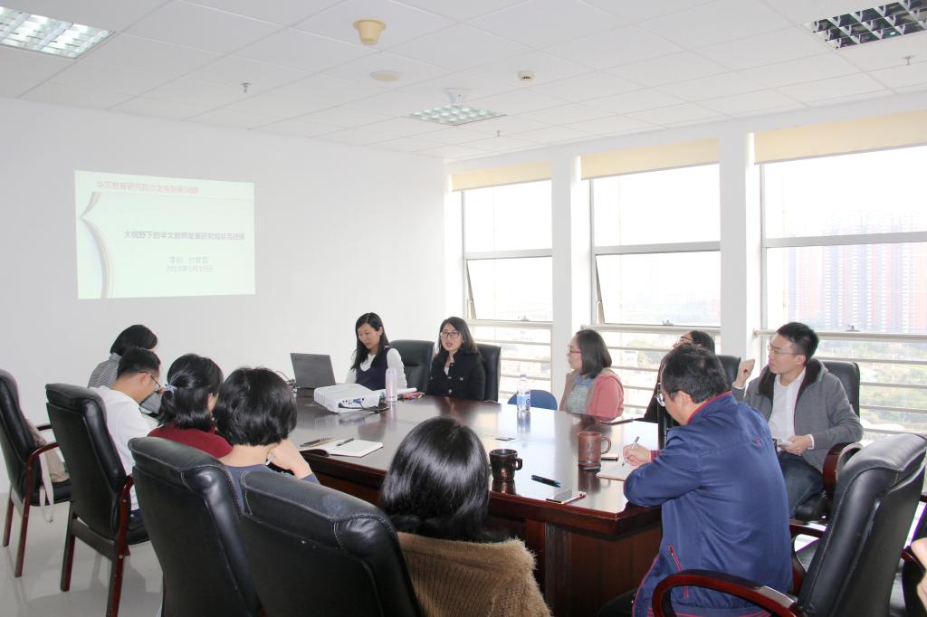 本期沙龙分为两大部分。第一部分,付梦芸博士以文献计量学的研究方法就12364篇论文展开研究,细致全面地剖析了华文教师发展研究的分布特征。从“时间分布”、“研究对象”、“研究主题”、“研究方法”、“研究区域分布”、“研究视角”六个维度对近30年来“华文教师发展”研究内容进行述评。评述总结出华文教育学是多领域学科的融合,华文教师的职业认同感值得关注。第二部分,李欣副教授以研究项目《华文教师专业发展概论》为例,提出华文教师的“专业素质结构”、“专业发展结构”、“专业发展影响因素”、“专业发展途径”以及“专业发展制度”等华文教师培养、发展要素。站在华文教师职业发展全过程构建华文教师培养、发展体式。旨在提出华文教师发展整体构架以供学者讨论。在场老师就华文教师发展与教师发展的异同,以及如何突出华文特色,展开了热烈的讨论。