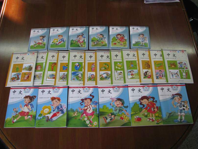 《中文》(试用版)教材是1996年由中华人民共和国国务院侨务办公室委托暨南大学华文学院为欧美地区周末制中文学校的华裔小学生学习中文而编写的。全套教材共48册,其中《中文》主课本12册,家庭练习册24册(分为A、B册),教师教学参考书12册。