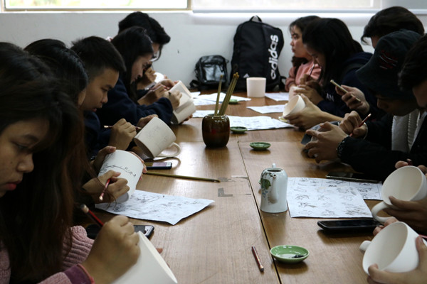在群香环绕的天福观光茶园,同学们在工作人员的讲解和指导下,采摘冬季新鲜的茶叶,放置于荷包袋中,体会茶香带来的轻松愉悦。采摘结束后,同学们在漳州科技学院体验DIY彩绘茶杯,发挥想象力,绘制属于自己的茶杯。