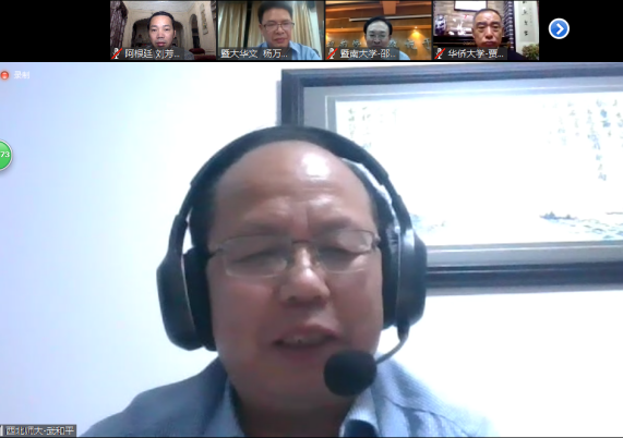 暨南大学华文学院院长邵宜教授以《发力最后一公里,切实提高教学技能》为主题进行了报告,他首先表示,在这样一个特殊的时期以视频会议方式共襄首届全球华文教学微课大赛之盛举,有非常特殊的历史意义。邵宜介绍了本次大赛的筹备情况、办赛初心与侨校的办学使命,并庄重承诺将联合各方力量,同心协力办好本次大赛,不辜负大家的殷殷期待。邵宜进一步强调课堂是华文教师培养、成长的“最后一公里”,是展现输出教师知识积累、技法修炼的关键,意义重大。他希望通过本次大赛,能充分激发全球华文教师锤炼教学技能,尤其是“互联网+”时代的教学技能与理念方法,并通过大赛汇聚一批优秀作品,可供全世界华文教师观摩、学习,促进教师之间的交流互鉴。基于此,邵宜吁请各位指导委员大力发动当地华文教师踊跃参赛,推荐当地资深教师作为专家评委参与大赛评审工作,一起发现、培育华教英才,帮助更多教师跑好、跑赢“最后一公里”,为推动全球华文教育大发展做出应有的贡献。